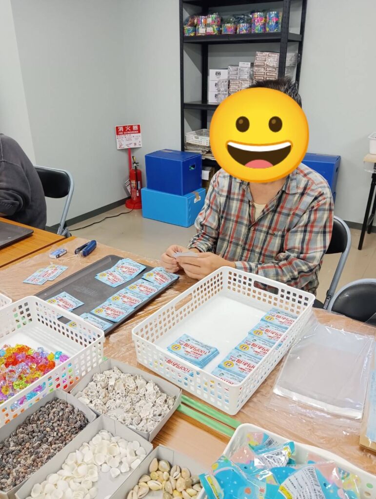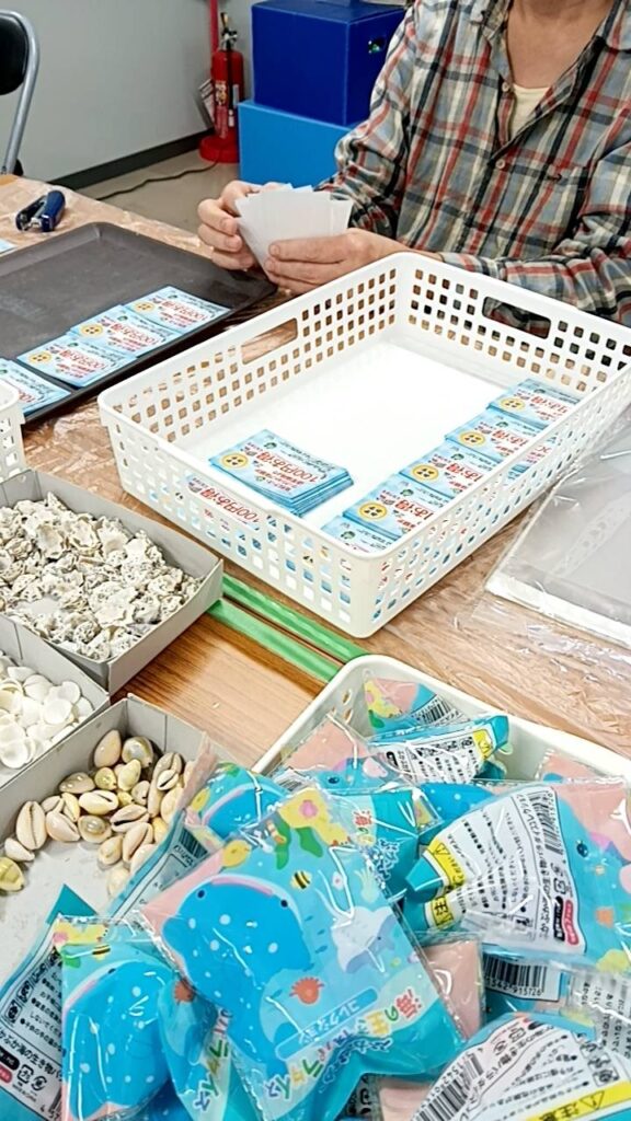 日々の作業 2025年10月31日 ブログ チケットのホチキスどめ、貝殻のレジン付け、貝殻の封入など様々な内職を日替わりで行っています☺️🐚 日々楽しく、明るく集中して作業しております😆✨ URL Copied!